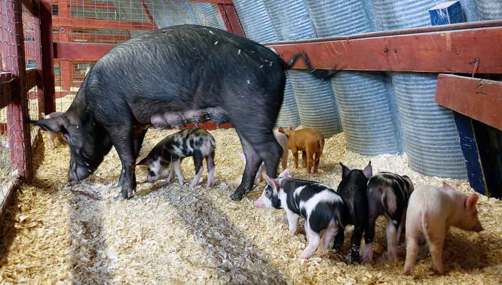 Mama pig and her piglets for town children to see.